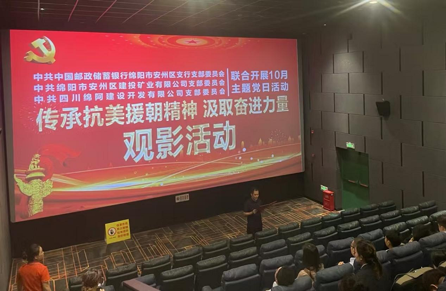 傳承紅色精神 汲取奮進(jìn)力量—— 中共中國郵政儲(chǔ)蓄銀行綿陽市安州區(qū)支行支部委員會(huì) 中共綿陽安州礦產(chǎn)資源集團(tuán)有限公司支部委員會(huì) 中共四川綿阿建設(shè)開發(fā)有限公司支部委員會(huì) 聯(lián)合開展10月主題黨日《志愿軍》觀影活動(dòng)