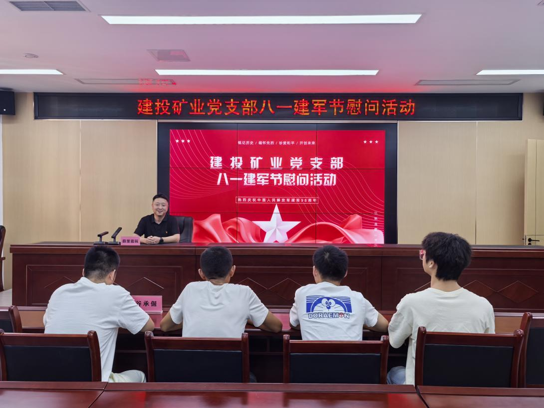 為慶祝中國(guó)人民解放軍建軍98周年,進(jìn)一步激發(fā)公司退役軍人干事創(chuàng)業(yè)熱情,凝聚團(tuán)結(jié)奮斗的磅礴力量。8月1日,建投礦業(yè)黨支部開(kāi)展“八一”慰問(wèn)送關(guān)懷活動(dòng),并召開(kāi)座談會(huì)。