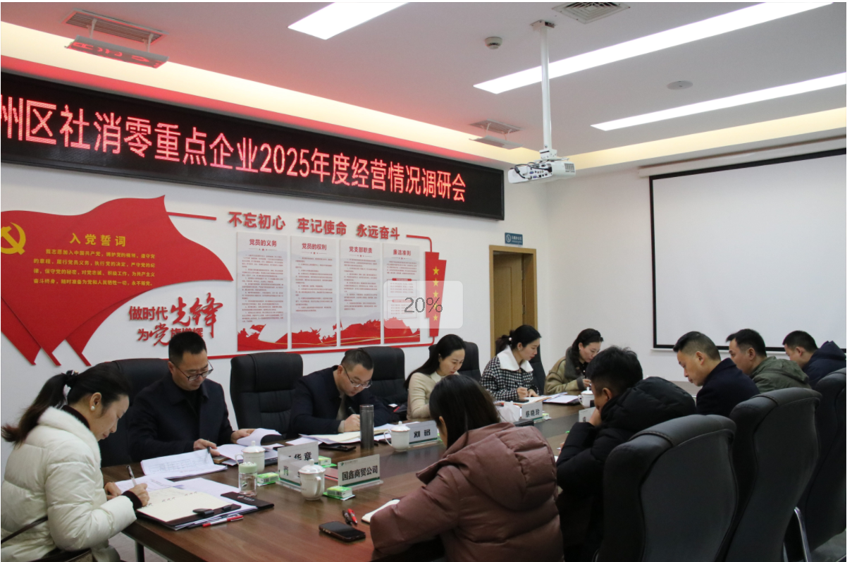 2月20日,區(qū)委常委、統(tǒng)戰(zhàn)部部長、總工會主席蔡曉玲帶隊調(diào)研社消零重點企業(yè)-公司下屬子公司綿陽市安州區(qū)建投國鑫商貿(mào)有限公司(以下簡稱“國鑫商貿(mào)”)2025年度經(jīng)營情況,并召開現(xiàn)場座談會。公司支部書記、董事長、支部委員、監(jiān)事會主席薛里霜筱、財務(wù)總監(jiān)王銘揚及相關(guān)子公司、部門負(fù)責(zé)人等參會。