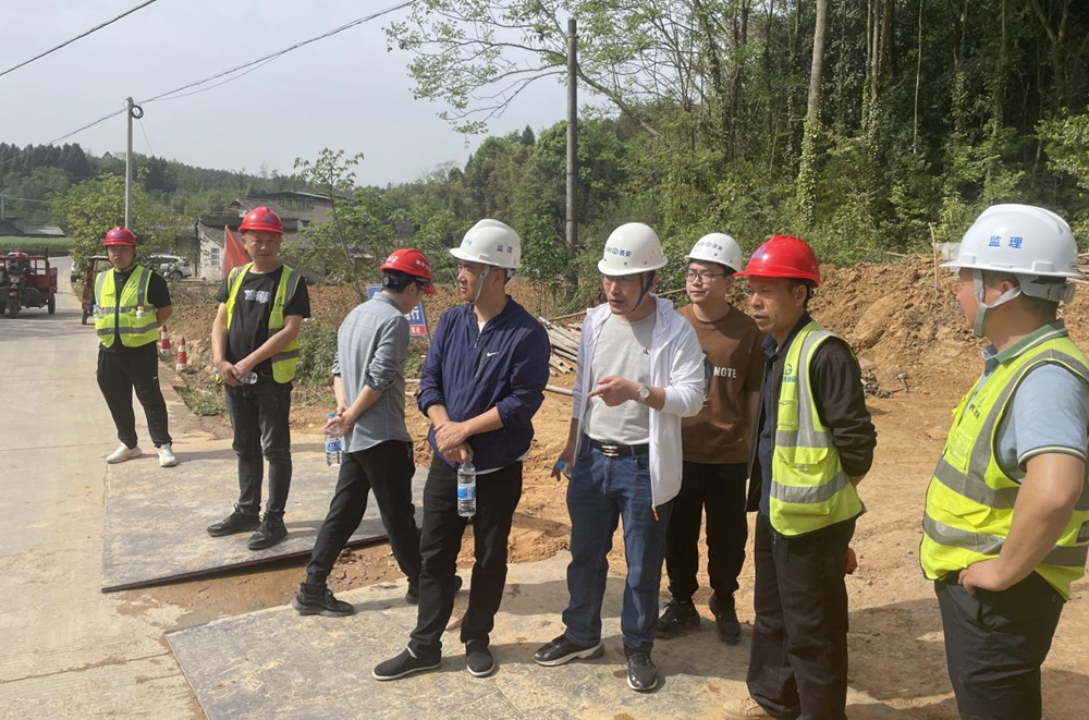 4月16日,區(qū)水利局一行到綿陽市安州區(qū)現(xiàn)代化灌區(qū)建設(shè)項目檢查建設(shè)情況。(素材來源:工程項目部 辛佳洋)